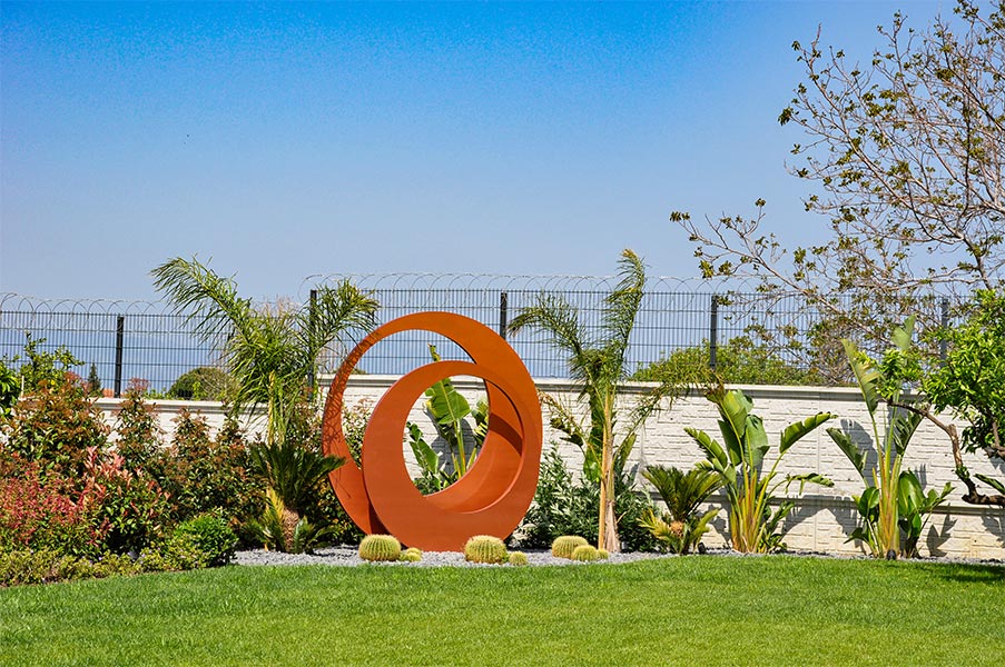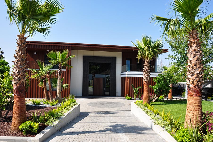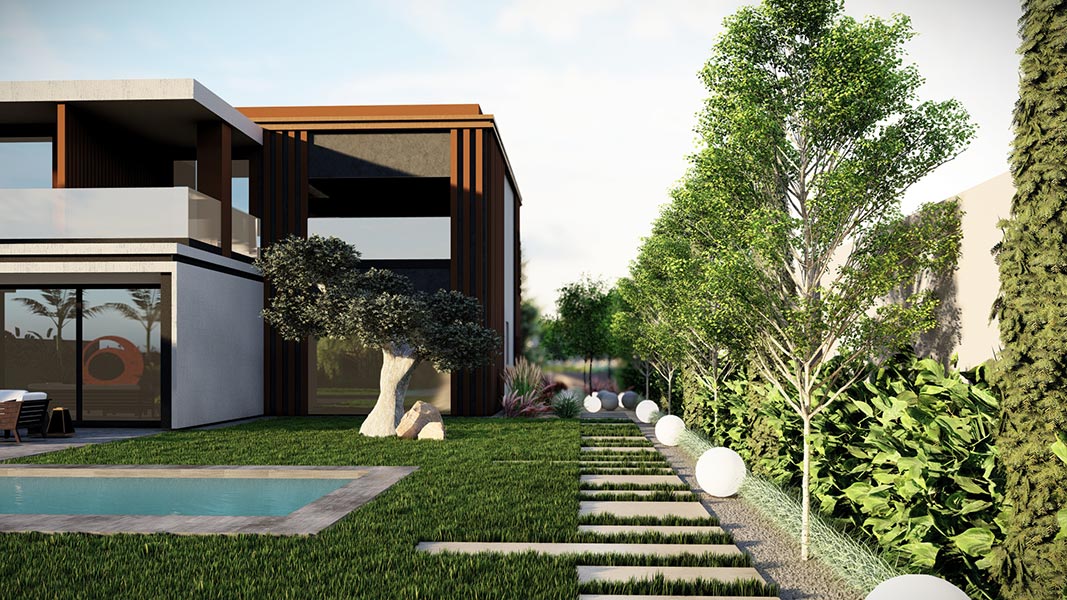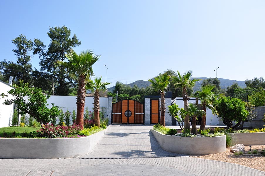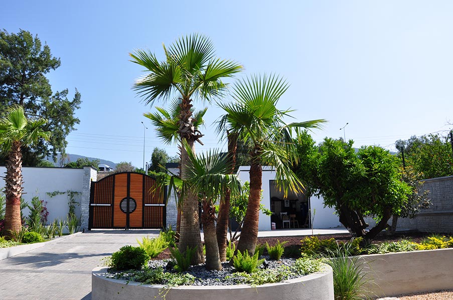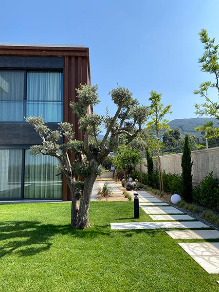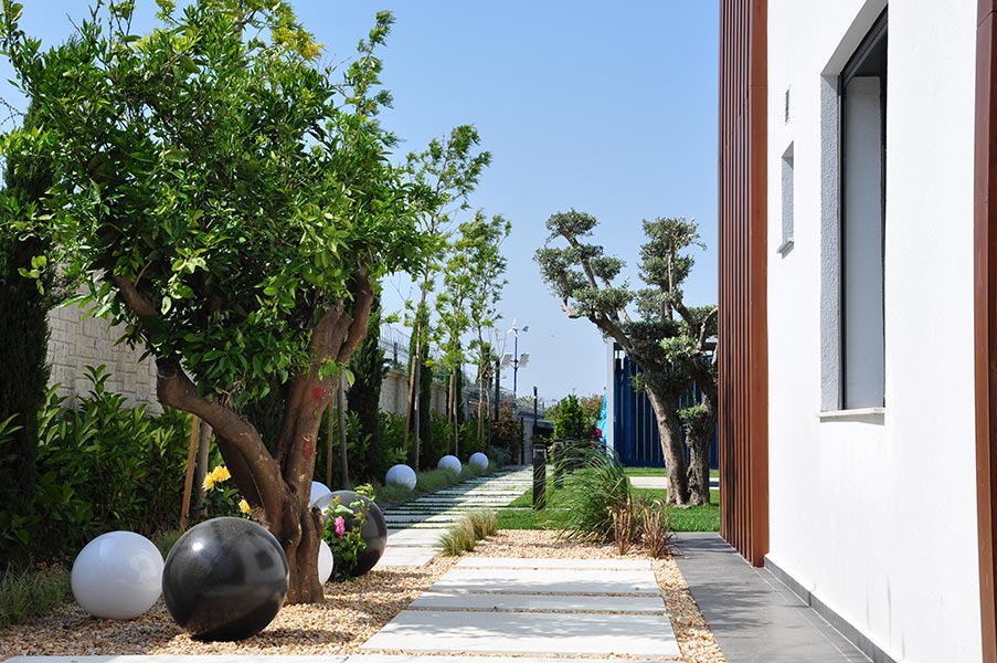 Yürüyüş yolları, oturma alanları ve aydınlatmalar gibi yapısal uygulamaların yanı sıra; bölgeye uygun bitkilerle doğal, sade ve şık bir bahçe tasarımı hayata geçirilmiştir.