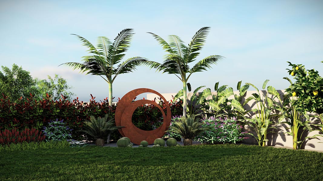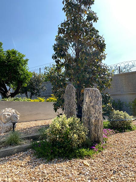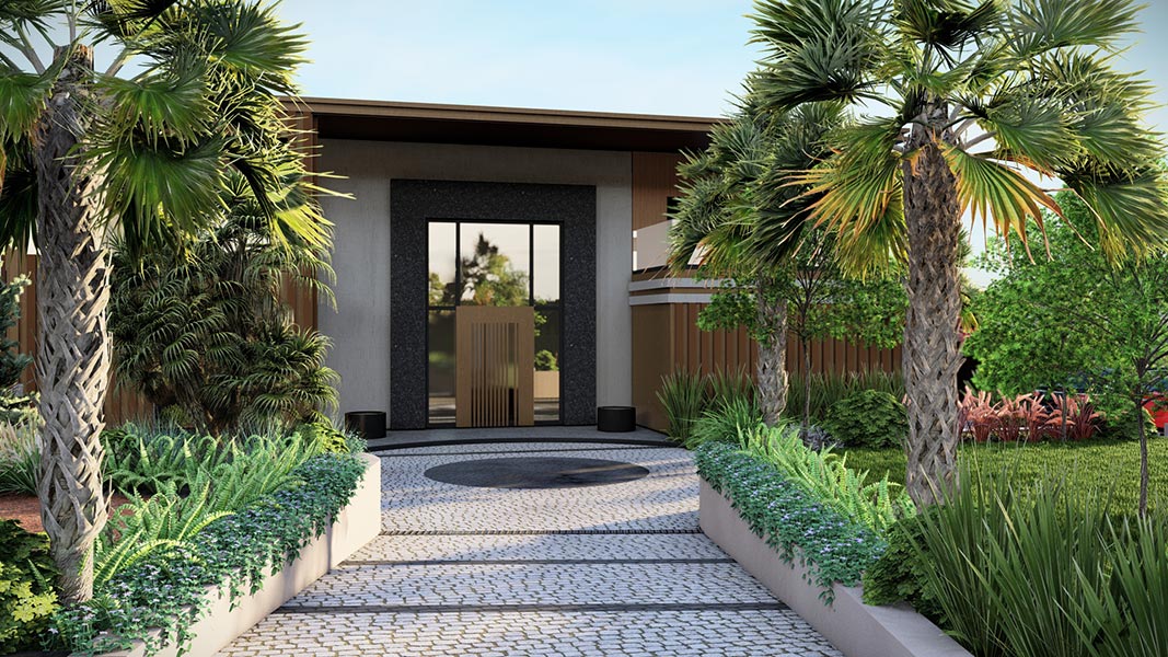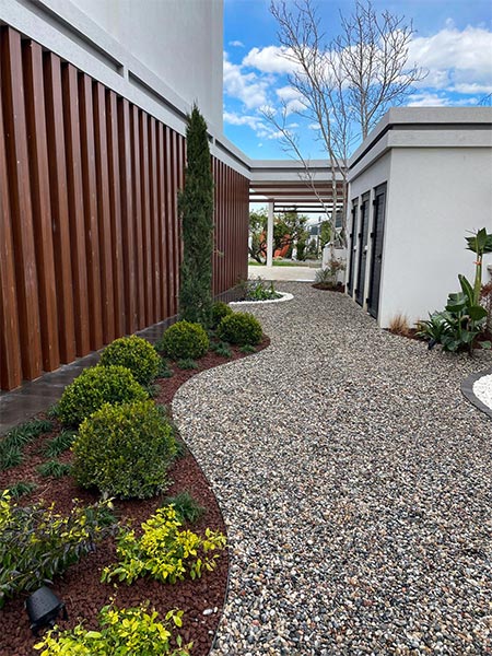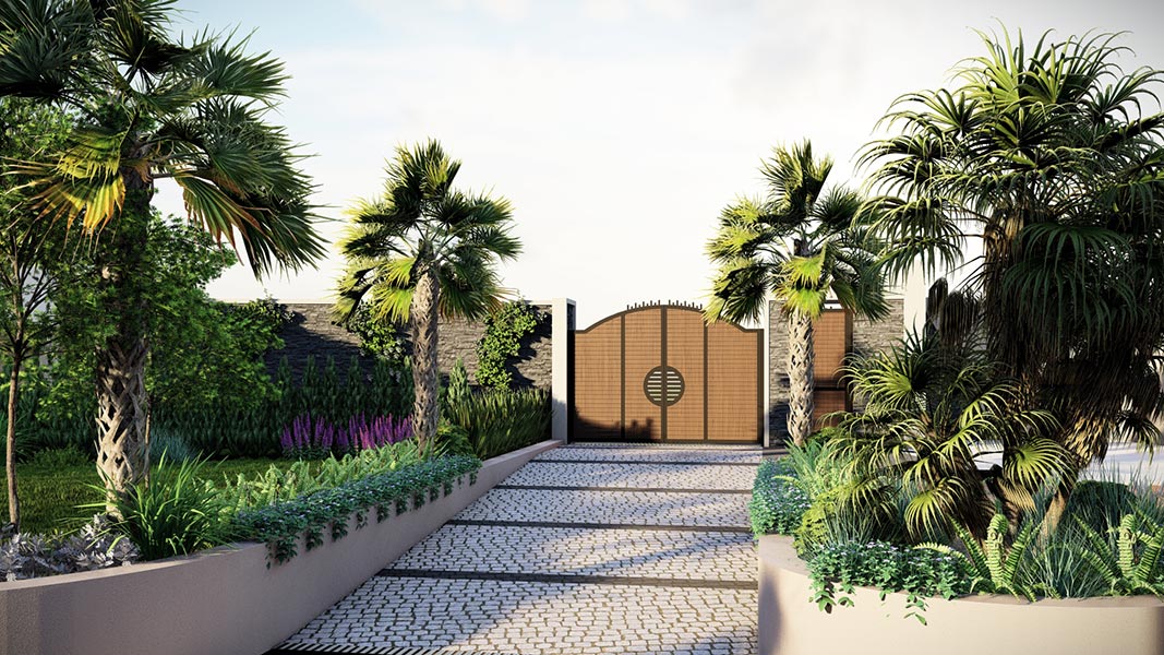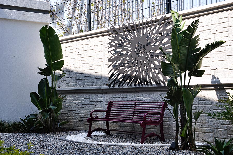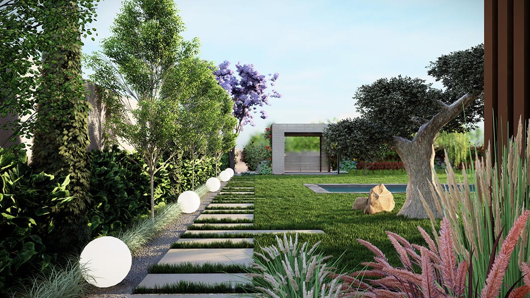 Yürüyüş yolları, oturma alanları ve aydınlatmalar gibi yapısal uygulamaların yanı sıra; bölgeye uygun bitkilerle doğal, sade ve şık bir bahçe tasarımı hayata geçirilmiştir.
